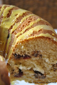 Mix 1 cup confectioner’s (icing) sugar with enough orange juice (usually about 1 to 2 tablespoons) to make a thick glaze. Spoon over the cooled cake and allow the glaze to drip down the sides.