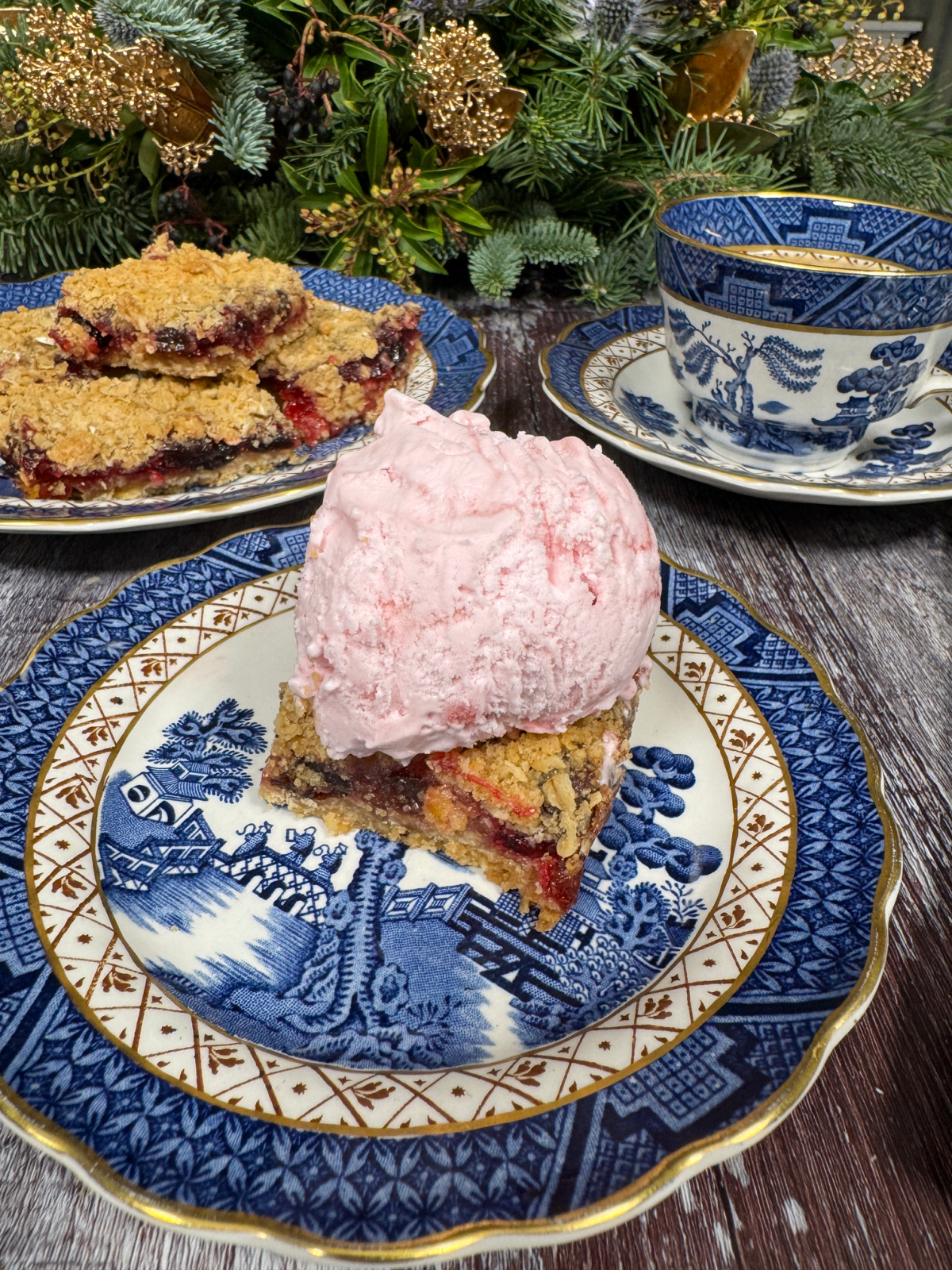 My family have nicknamed this recipe “Cranberry Crunch” because Cranberry Oat Crumble Bars also double as a dessert if you serve them in bigger portions with your favourite ice cream. If I’m honest, that’s my favourite way to enjoy this recipe – although I would never say no to a cranberry oat crumble bar cookie with a cup of tea!
