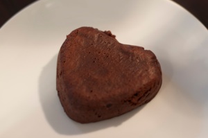 I made a couple of changes to the Molten Chocolate Babycakes recipe. I substituted almond extract for vanilla, and cut the sugar back by 4 tablespoons. I was really pleased with the results. As the dark chocolate makes these intense in an almost ‘death by chocolate’ way, I served them with good vanilla ice cream.