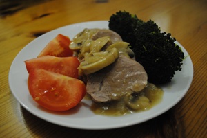 When the tenderloin is cooked, remove it from the oven and allow it to rest for about ten minutes. Slice and serve with some of the sauce poured over top. Serve the remaining sauce in a gravy boat on the side.