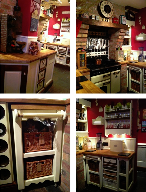 The warm reds used to decorate the kitchen juxtapose beautifully with the original bricks and make the kitchen feel really cosy. Accents of green and rich earth tones add a lovely touch. And for all it looks like a showpiece, this is a truly functional space with lots of very clever storage. The unit in the picture on the left is on casters and slides out, along with a unit on the other side, to form a large, moveable island.