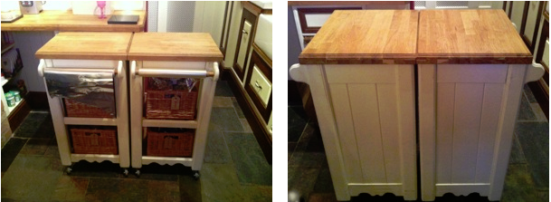 I took the photo on the left standing in the entrance from the back door, with the washer, dryer and cupboards on my right and left. You then walk into the actual kitchen (note the dining area in front of you and storage unit on the right of the table). This is like a breakfast area as you walk in, and as the house has a large separate dining room, this the perfect place for light meals and snacks.