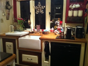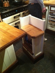 And another moveable piece of cabinetry slides out and becomes a seat!