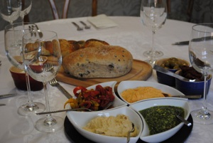 I love serving appetizer trays. I even serve them at dinner parties; it’s the fastest way I know to help a group of folks who don’t know one another feel relaxed and find conversational common ground. Nothing looks more welcoming than a table laid out with a selection of breads, olives, spreads and dips.