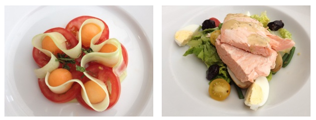 Salad of Ogen Melon, Mint & English Tomatoes with a Merlot Dressing | Poached Shetland Islands Salmon Niçoise Salad